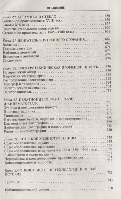 Т. Дерри и Т. Уильямс представили блистательный рассказ о технологических достижениях человечества с древности до наших дней, уделив пристальное внимание влиянию технического прогресса на ход истории. Первая часть повествования включает историю технологий с древних времен до 1750 года. Рассказ начинается с общего исторического обзора древних цивилизаций, затем авторы рассматривают такие темы, как производство продуктов питания, металлообработка, строительство зданий, ранние источники энергии и начало химической промышленности. Вторая часть текста посвящена развитию парового двигателя, станков, современного транспорта, добыче угля и металлов, подъему современной химической промышленности, текстилю, двигателю внутреннего сгорания, электричеству и многим другим. Каждому разделу предшествует историческое введение, книга завершается рядом таблиц, предназначенных для отображения взаимосвязи имен и событий в тексте. Книга богато иллюстрирована и наполнена фактологическими данными.