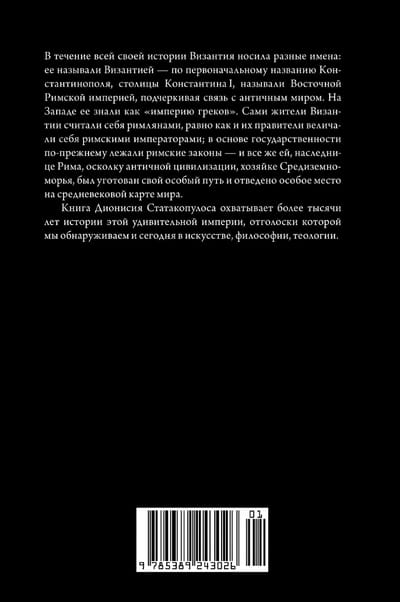 История Византии берет начало в IV веке. Возникнув в результате глубокого кризиса Римской империи, она превратилась в одно из самых могущественных государств Средневековья и более тысячи лет занимала особое положение между восточным и западным миром. Известный исследователь-византинист, автор книг Дионисий Статакопулос показывает развитие Византии с момента раздела Римской империи до самого падения Константинополя в 1453 году, выделяя основные этапы в ее поразительной и неоднозначной истории. Особое внимание уделяется историческому фону, на котором Византия достигла своего расцвета, и наследию, оставленному долгой историей этого государства. Статакопулос глубоко анализирует политические события, экономику, социальную систему, культуру Византийской империи и причины, по которым она стала центром искусств, теологии, образования на многие века вперед.