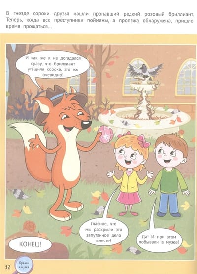 Привет! Я - лис по имени Фокс и я - детектив! Моя работа - расследование преступлений и ловля преступников. Чтобы распутать сложное дело мне приходится мыслить логически, идти по следу, решать непростые головоломки. Сегодня я расскажу тебе историю, которая случилась однажды в музее. Надеюсь, ты поможешь мне распутать это непростое дело о краже!
