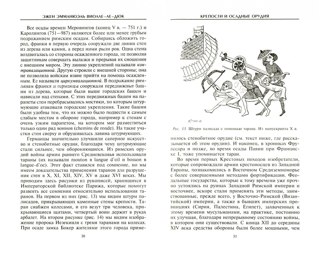Известный французский архитектор и знаток искусства Виолле­ле­Дюк в своем труде о средствах ведения войны в Средние века использовал не только знание принципов строительства, огромный опыт зодчего, но и результаты проведенных им исследований в области истории. Последовательно прослеживая смену и устройство средств обороны и наступления на примере знаменитых европейских замков и крепостей, автор объясняет важные эпизоды истории, особенно во время войн между Англией и Францией.