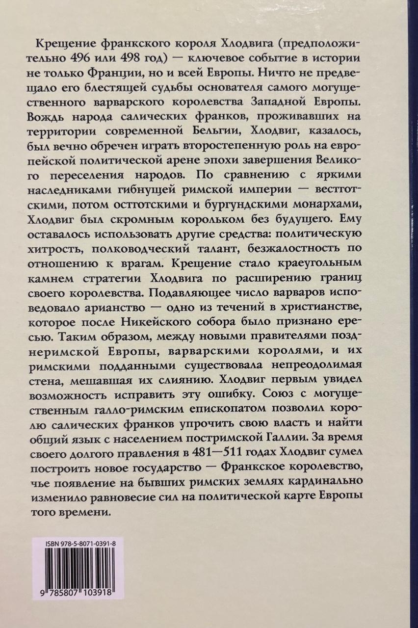 Крещение франкского короля Хлодвига (предположительно 496 или 498 год) - ключевое событие в истории не только Франции, но и всей Европы. Ничто не предвещало его блестящей судьбы основателя самого могущественного варварского королевства Западной Европы. Вождь народа салических франков, проживавших на территории современной Бельгии, Хлодвиг, казалось, был вечно обречен играть второстепенную роль на европейской политической арене эпохи завершения Великого переселения народов. По сравнению с яркими наследниками гибнущей римской империи - вестготскими, потом остготскими и бургундскими монархами, Хлодвиг был скромным корольком без будущего. Ему оставалось использовать другие средства: политическую хитрость, полководческий талант, безжалостность по отношению к врагам. Крещение стало краеугольным камнем стратегии Хлодвига по расширению границ своего королевства. Подавляющее число варваров исповедовало арианство - одно из течений в христианстве, которое после Никейского собора было признано ересью. Таким образом, между новыми правителями позднеримской Европы, варварскими королями, и их римскими подданными существовала непреодолимая стена, мешавшая их слиянию. Хлодвиг первым увидел возможность исправить эту ошибку. Союз с могущественным галло-римским епископатом позволил королю салических франков упрочить свою власть и найти общий язык с населением постримской Галлии. За время своего долгого правления в 481-511 годах Хлодвиг сумел построить новое государство - Франкское королевство, чье появление на бывших римских землях кардинально изменило равновесие сил на политической карте Европы того времени.