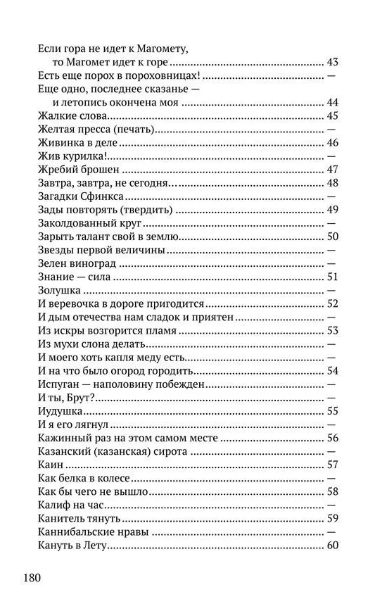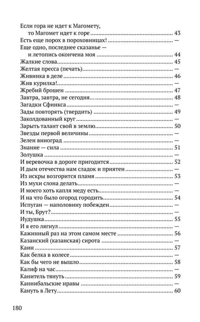 Как поставить точку над «и», сделать из мухи слона и не зарыть талант в землю? Эта развивающая книга поможет школьникам не заблудиться в трех соснах и расскажет, где зарыта собака. В ней собраны крылатые слова – образные, меткие выражения, прочно вошедшие в наш разговорный и литературный язык. Крылатые выражения делают нашу речь богаче и выразительнее, но не всегда нам известна история их происхождения. Многие из них заимствованы из литературных произведений русских писателей, мифов и легенд Древней Греции и Ближнего Востока, Библии. Также широко употребимыми стали имена исторических деятелей и событий, названия пьес, картин и кинофильмов. В книге дана этимология и указан первоисточник самых известных слов и высказываний.