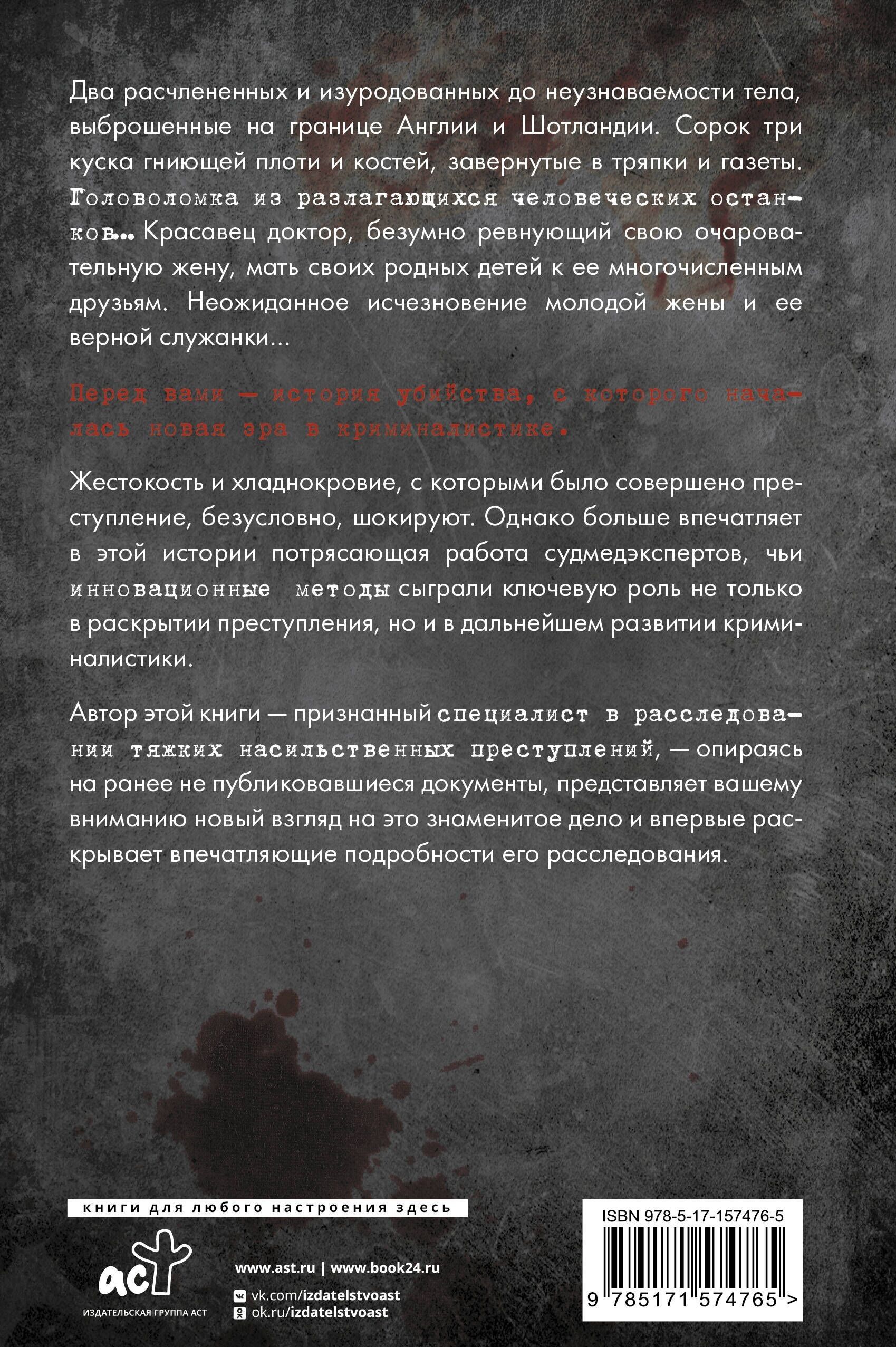 Два расчлененных и изуродованных до неузнаваемости тела, выброшенные на границе Англии и Шотландии. Сорок три куска гниющей плоти и костей, завернутые в тряпки и газеты. Головоломка из разлагающихся человеческих останков… Красавец доктор, безумно ревнующий свою очаровательную жену, мать своих родных детей к ее многочисленным друзьям. Неожиданное исчезновение молодой жены и ее верной служанки…