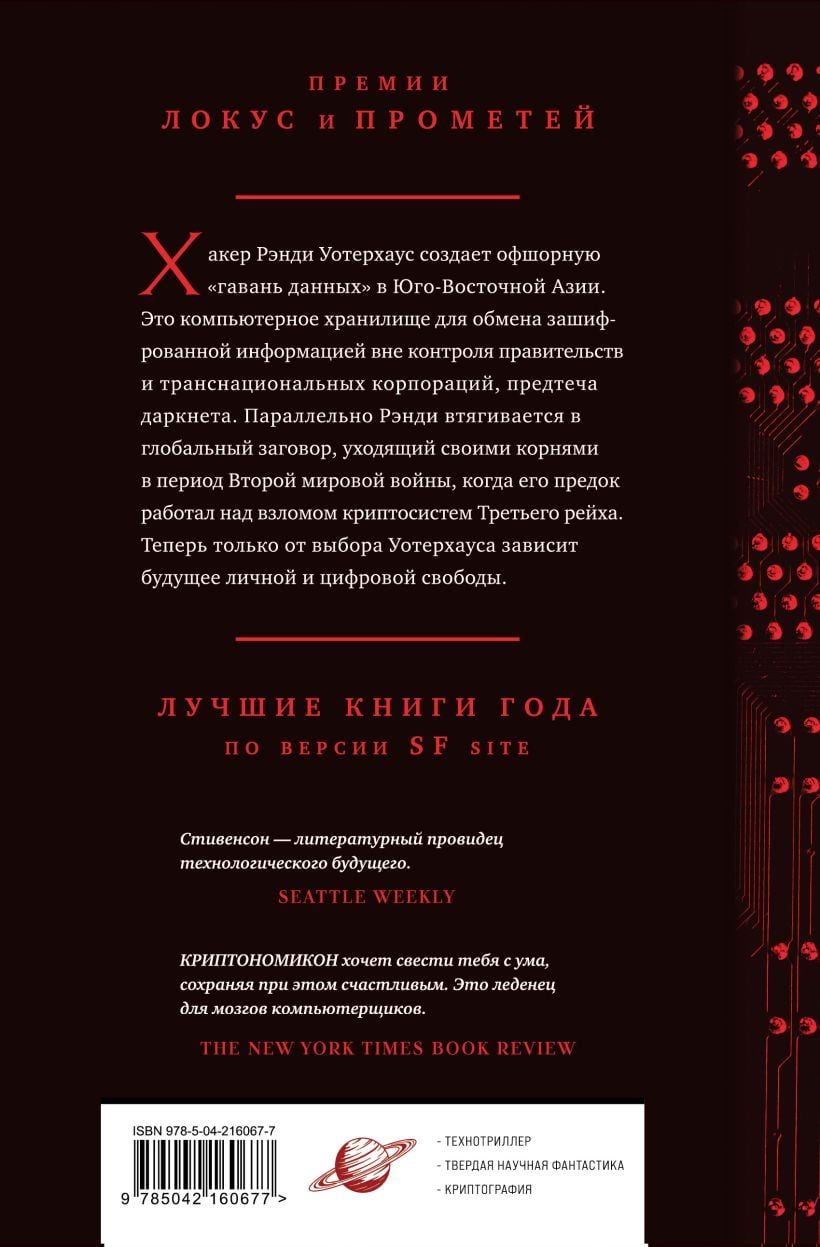 «Криптономикон» — это захватывающая демонстрация силы и самая совершенная и впечатляющая работа Нила Стивенсона на сегодняшний день, глубокая, пророческая и гипнотическая. Это произведение великого искусства, мысли и творческой смелости — продукт подлинного воображения.