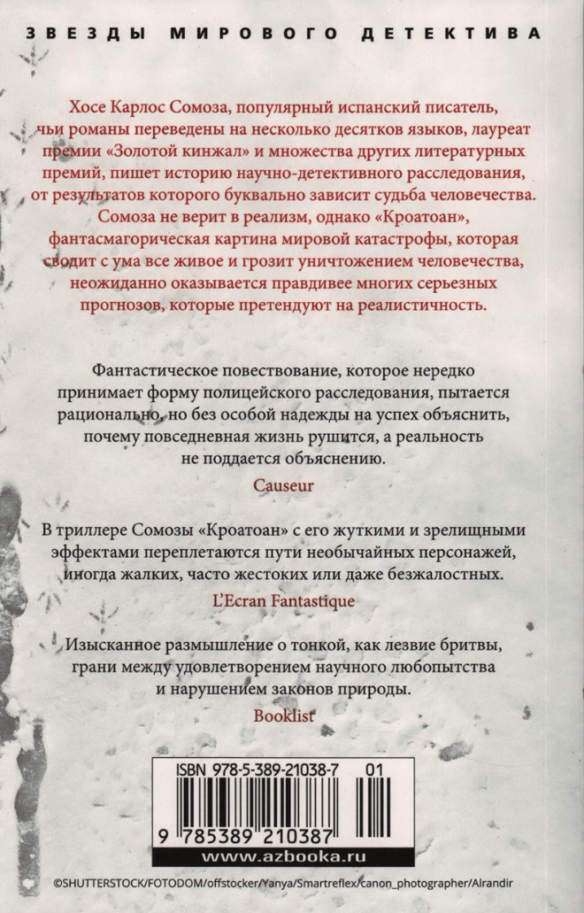 Этот апокалипсис предвидел профессор Карлос Мандель, специалист по поведению животных, покончивший с собой два года назад. Перед смертью он запрограммировал отправку сообщения нескольким близким людям, в том числе своей ученице, биологу Кармеле Гарсес, и сообщение это могло бы помочь изменить ход ужасных событий. Но удастся ли его понять? Ведь оно состоит из единственного слова «Кроатоан» — надписи, найденной на далеком острове, где в XVI веке таинственным образом исчезло все население…