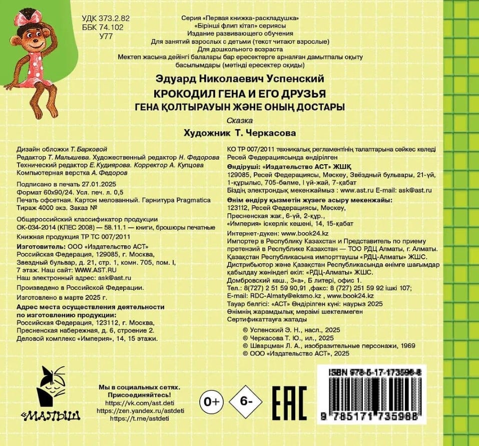 «Дом дружбы» – чудесное место, которое придумал построить Крокодил Гена. Там смогут найти себе друзей люди, животные и даже неведомый науке зверь Чебурашка! Маленькая сказка Эдуарда Успенского познакомит ребёнка с миром Крокодила Гены и Чебурашки, а очаровательные иллюстрации Татьяны Черкасовой подтолкнут его к самостоятельному чтению.