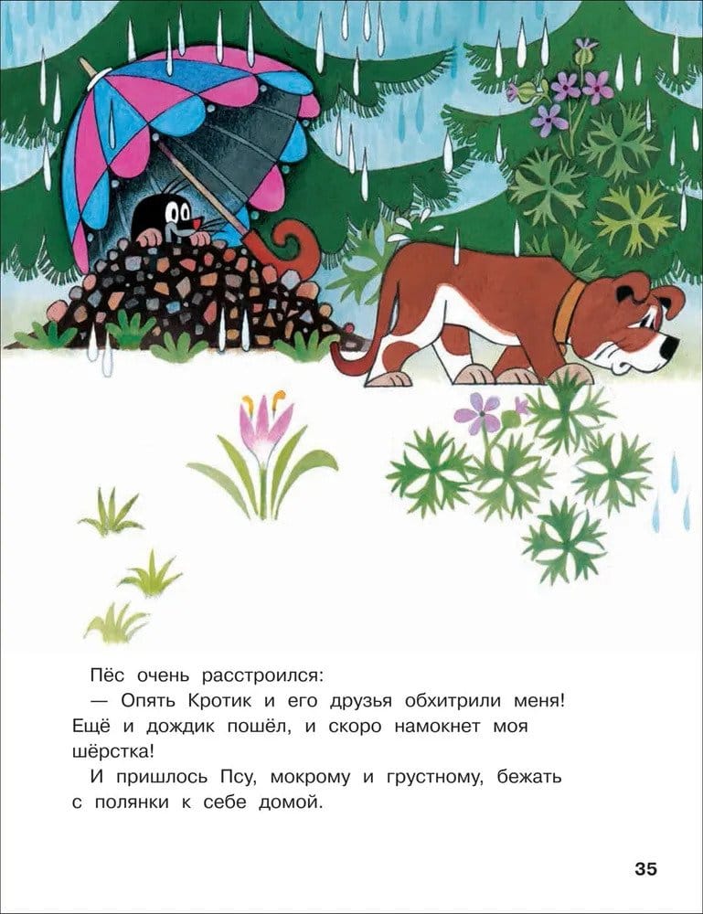 Чешский художник Зденек Милер (1921—2011) больше полувека назад создал мультипликационный сериал о Кротике. С тех пор этот милый зверек стал любимцем детей и взрослых во всем мире. Истории о приключениях Кротика, Мышки, Зайца и других обитателей Сказочного леса научат маленьких читателей быть добрыми, храбрыми и любознательными.  В книгу вошли сказки «Кротик и зонтик», «Как Кротик вылечил Мышку» и «Кротик и Орёл».
