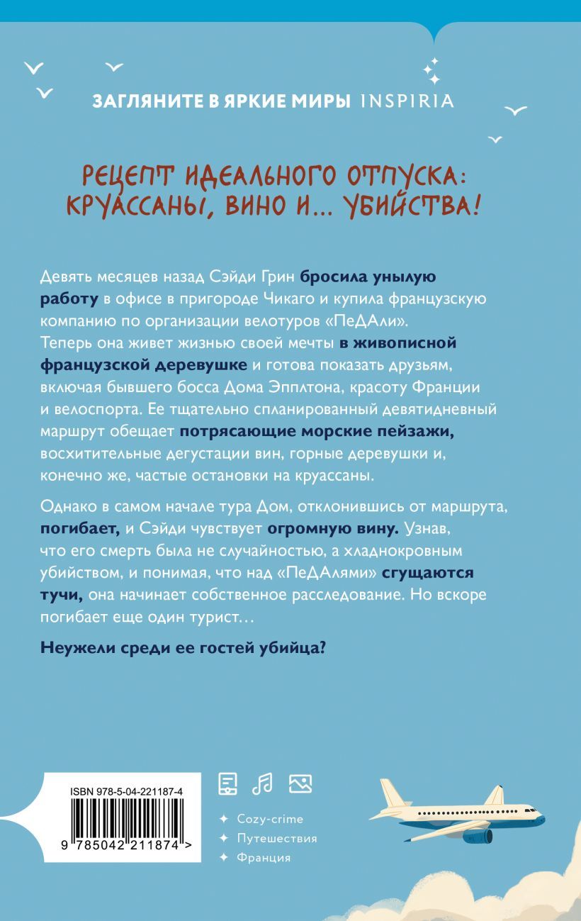 Девять месяцев назад Сэйди Грин бросила унылую работу в офисе в пригороде Чикаго и купила французскую компанию по организации велотуров «ПеДАли». Теперь она живет жизнью своей мечты в живописной французской деревушке и готова показать друзьям, включая бывшего босса Дома Эпплтона, красоту Франции и велоспорта. Ее тщательно спланированный девятидневный маршрут обещает потрясающие морские пейзажи, восхитительные дегустации вин, горные деревушки и, конечно же, частые остановки на круассаны.