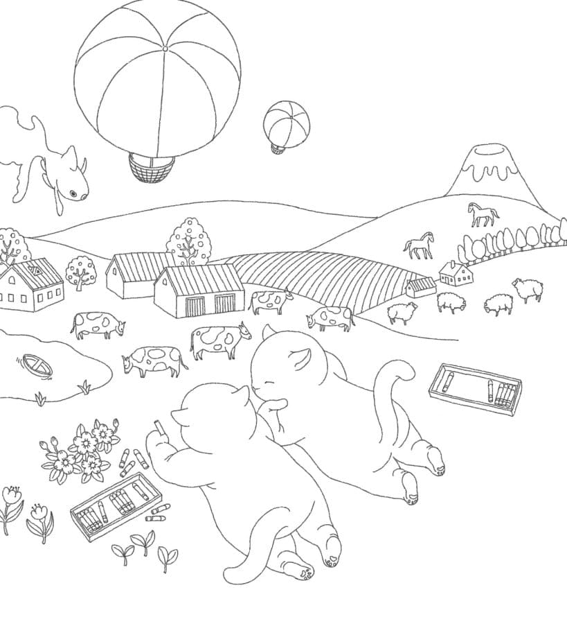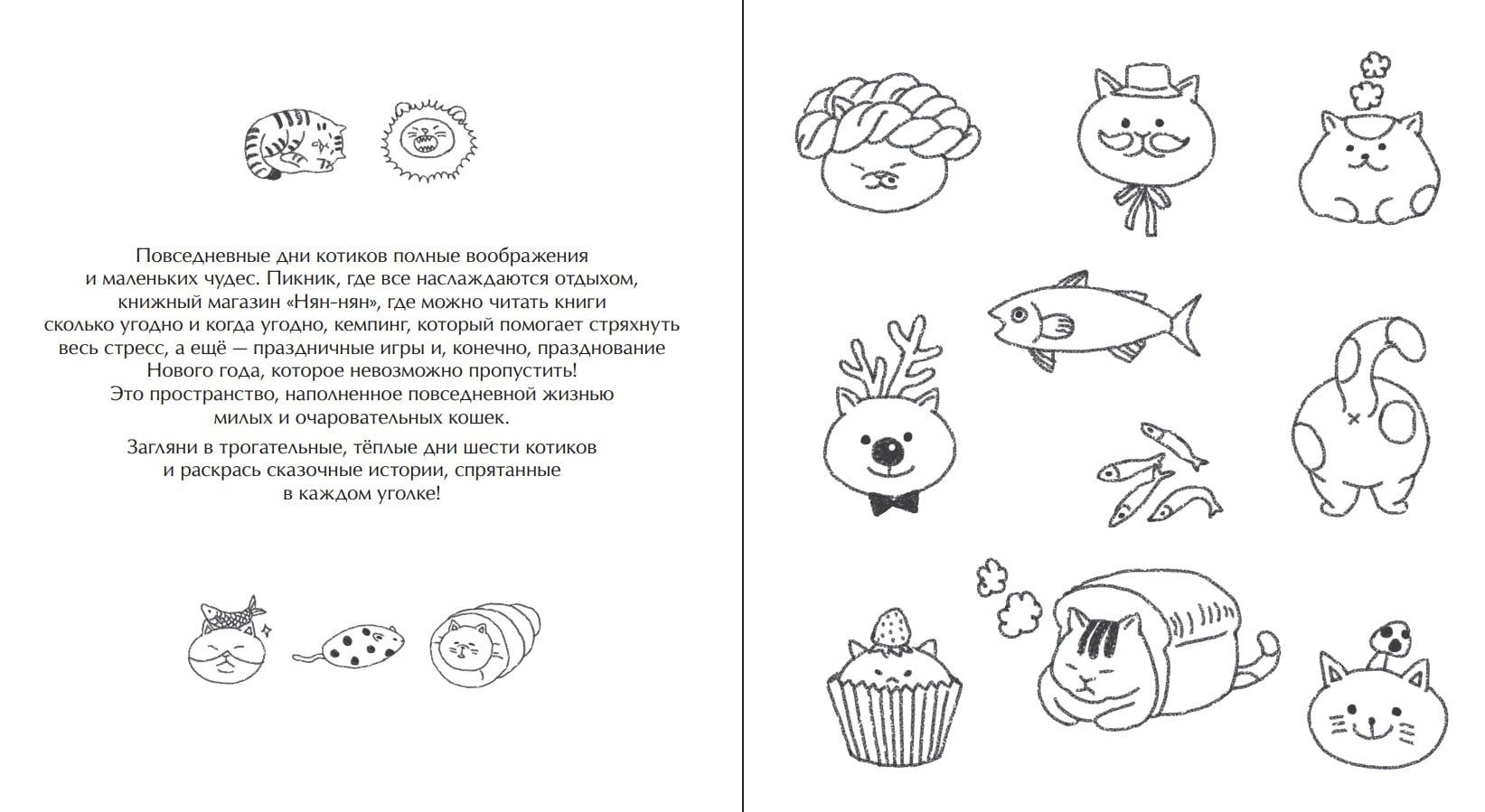 Иллюстратор Нянсонги создала раскраску, где шесть милых котиков наслаждаются жизнью!