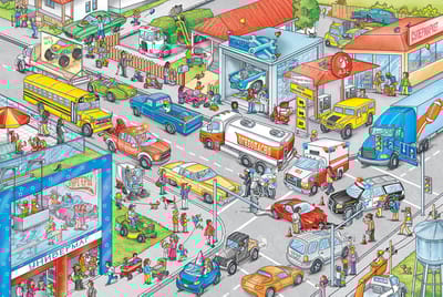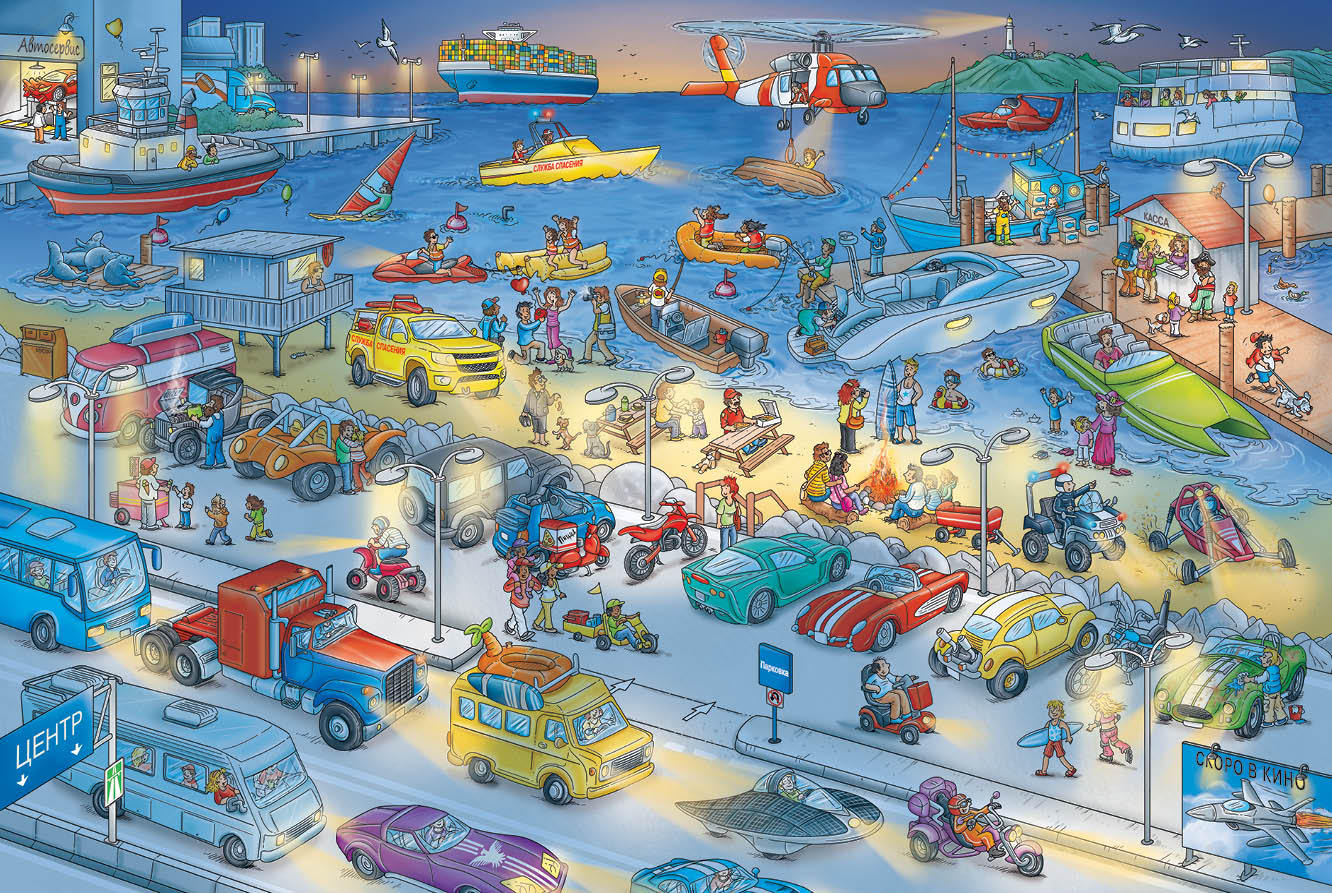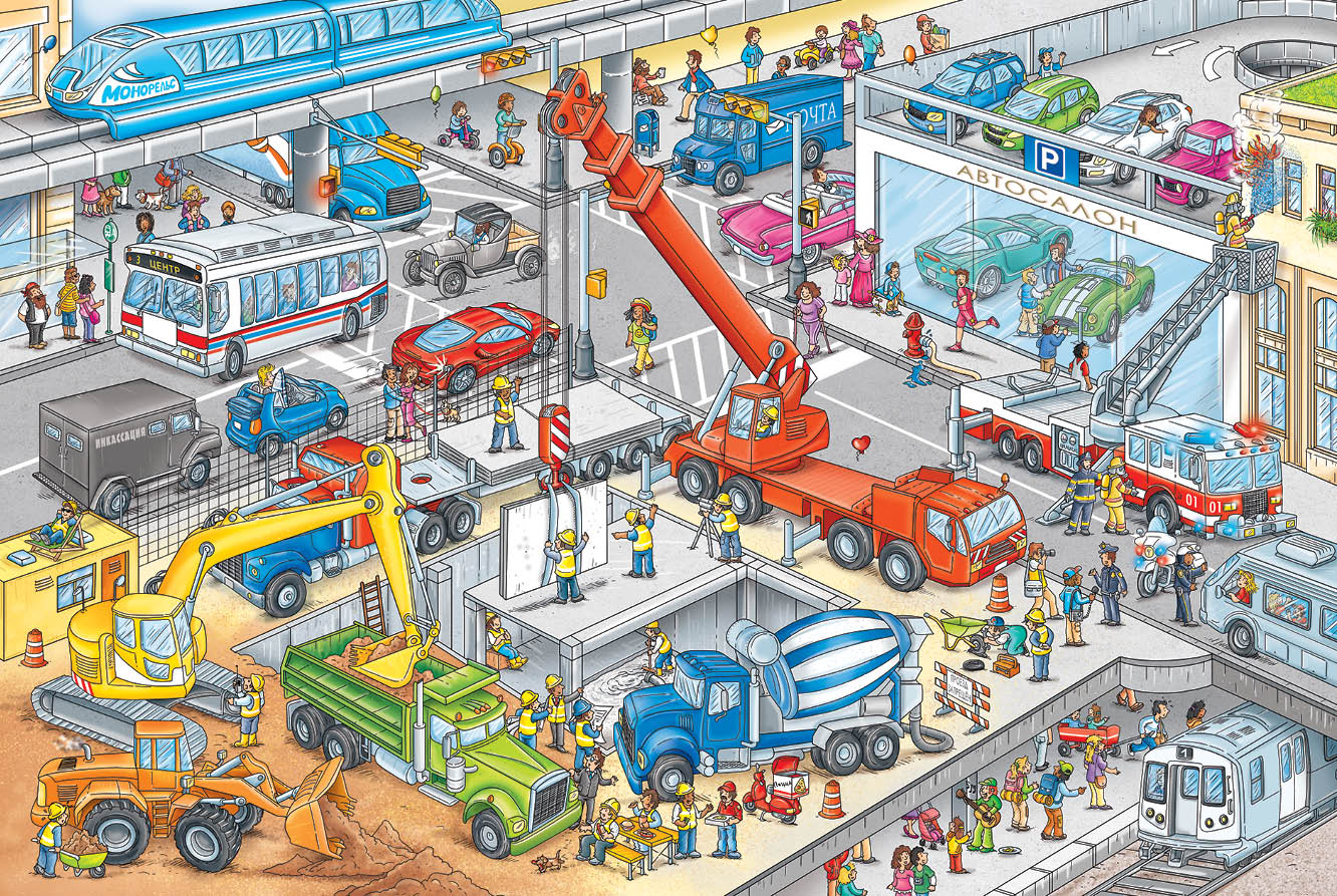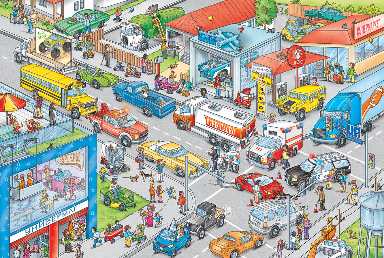 Книга расскажет об одном дне из жизни двух десятков главных героев - всех их нужно отыскать на каждом развороте книги. Кто-то из них ходит пешком, кто-то передвигается на машине, но их маршруты то и дело пересекаются, сюжетные линии перекрещиваются, складываясь в единую историю.