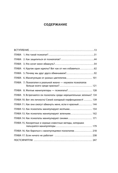 Речь о психопате, с которым скандинавский журналист и писатель столкнулся во время одного из своих выступлений. Короткое общение настолько поразило Эриксона, что он взялся написать продолжение вышедшего ранее бестселлера "Кругом одни идиоты". Если в первой книге автор описывает четыре цветовых типа человеческих характеров, то в этой добавляет к ним пятый тип – психопатов. Благодаря этой книге вы узнаете: • что творится в головах психопатов; • как их вычислить среди своих знакомых; • в чем уязвимость для психопатов каждого из четырех цветовых типа; • как оградить себя от воздействия людей с психопатическим радикалом личности.