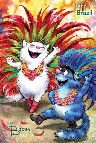 Открытка. Синие коты. Кругосветное путешествие. Бразилия