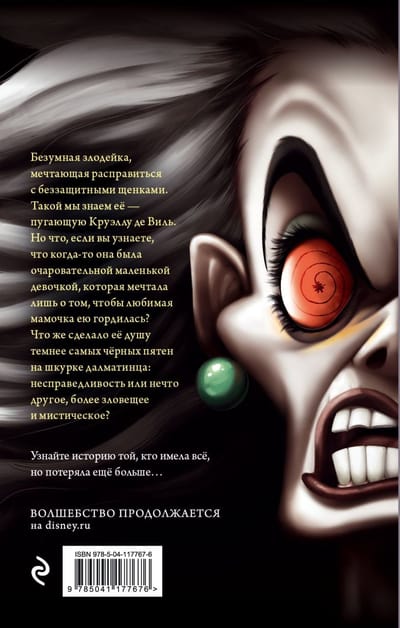 Серена Валентино — автор, который мастерски даёт новое дыхание классическим сказкам Диснея, помогая взглянуть на них глазами не героев, а злодеев. Почему Круэлла де Виль так сильно ненавидела собак? И всегда ли она была такой безумной и злобной? Узнайте ответы на эти вопросы в новой книге, которая вышла как раз перед громкой премьерой нового фильма Disney «Круэлла»! Эта история продолжает серию, в которую вошли такие необычные книги, как «Малефисента. История тёмной феи», «Злые Сёстры. История трёх ведьм», «Матушка Готель. История старой ведьмы». Такими диснеевские сказки вы ещё не видели! Взгляните на знакомую историю с другой стороны — со стороны зла...