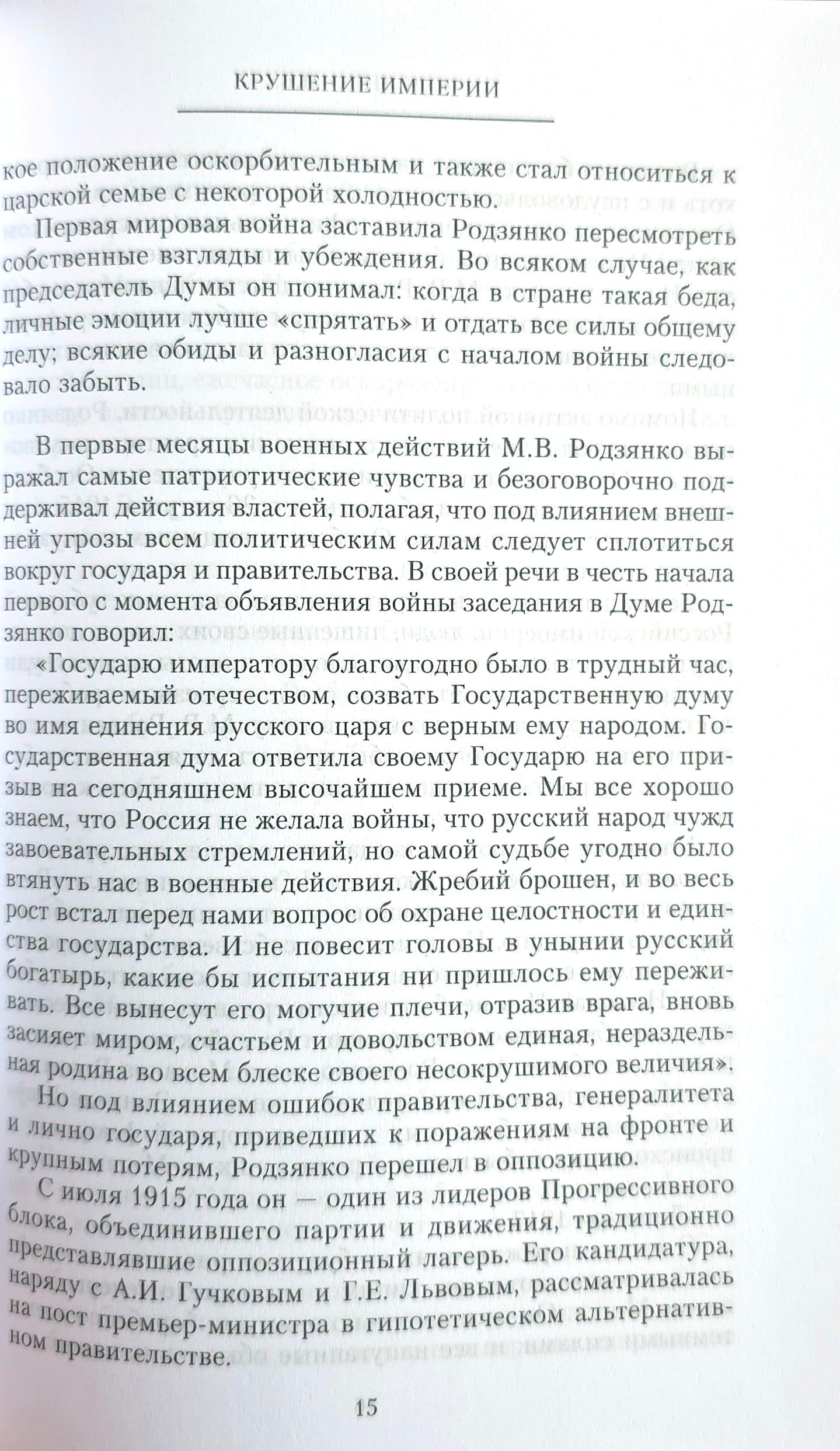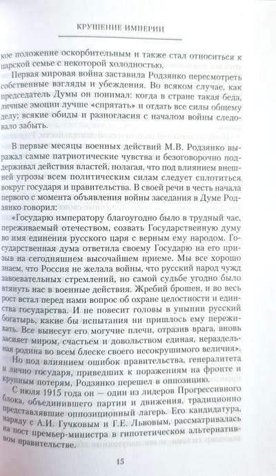 Михаил Владимирович Родзянко относился к государственной и политической элите Российской империи. Действительный статский советник, камергер, член Государственного совета, депутат Третьей и Четвертой Государственных дум, в 1911 —1917 гг. — председатель Государственной думы. Основатель Союза 17 октября... По роду деятельности он оказался причастен к ключевым событиям российской истории, лично знал многих ее персонажей, оставивших след на страницах учебников и... нажил немало врагов. Прежде всего, председателю Думы не могли простить его роль в событиях Февральской революции 1917 года; в среде белой эмиграции Родзянко даже ставили в вину, что ход истории принял именно такой оборот — отречение императора, крушение империи и всю последующую цепь событий лично Родзянко и другие облеченные властью лица должны были предотвратить. Возможно ли это было в 1917 году? Бывший председатель Государственной думы излагает свой взгляд на политическую жизнь Российской империи в предреволюционные годы.
