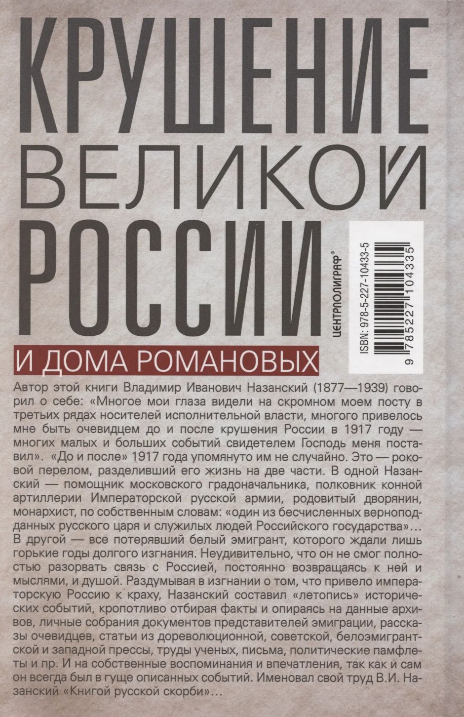 Назанский Владимир Иванович (1877-1939) - последний помощник московского градоначальника, полковник конной артиллерии Императорской русской армии. Архивы, которые изучал и на которые ссылается автор, погибли при оккупации Парижа немцами, во время Второй мировой войны. Книга впоследствии не переиздавалась. Второй том так и не был издан.