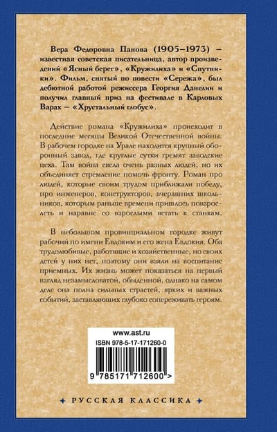Действие романа «Кружилиха» происходит в последние месяцы Великой Отечественной войны. В рабочем городке на Урале находится крупный оборонный завод, где круглые сутки гремят заводские цеха. Там война свела очень разных людей, но их объединяет стремление помочь фронту. Роман про людей, которые своим трудом приближали победу, про инженеров, конструкторов, вчерашних школьников, которым раньше времени пришлось повзрослеть и наравне со взрослыми встать к станкам.