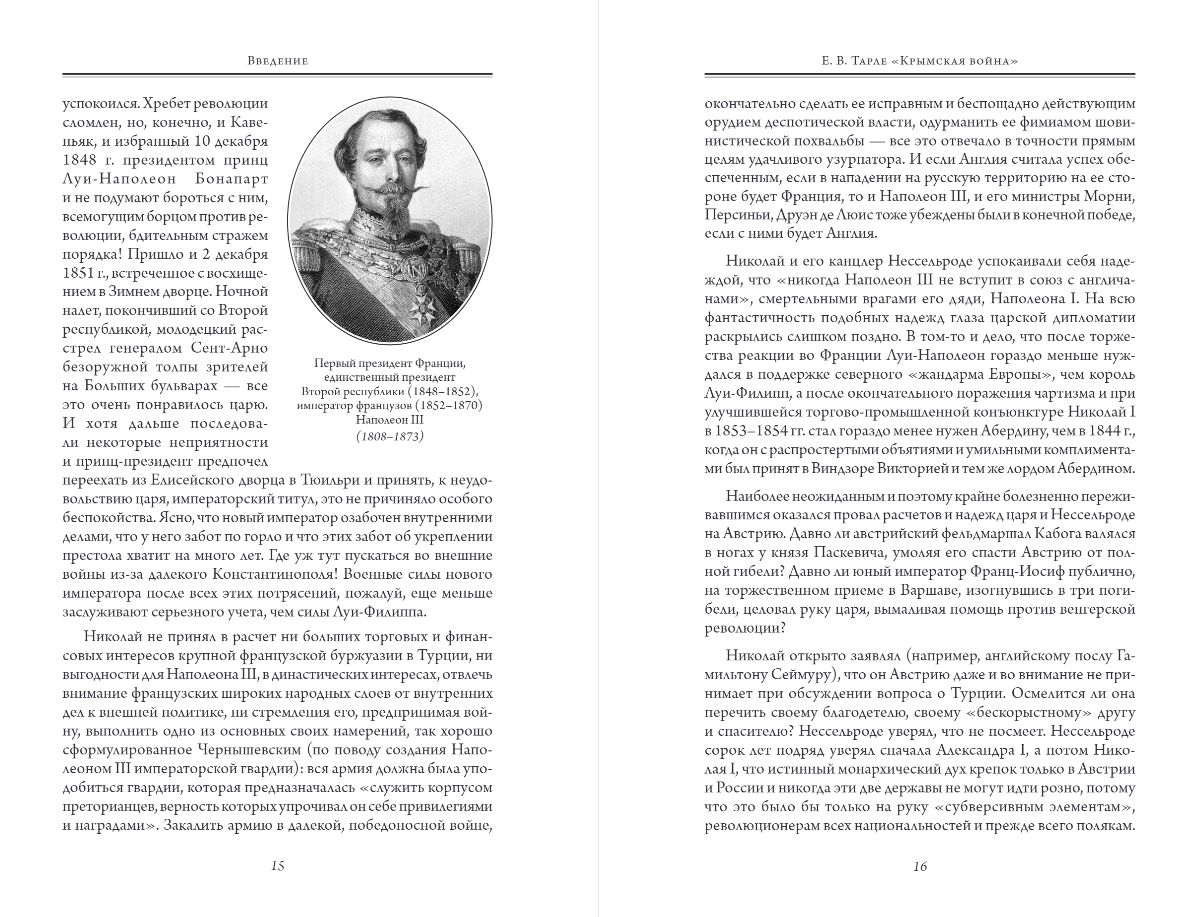 В первом томе собрания сочинений представлена первая часть монографии «Крымская война» — фундаментального труда Е. В. Тарле, ставшего первым в советской историографии крупным научным исследованием поистине мировой войны, которая в русской традиции чаще называется Крымской, а в иностранной литературе — Восточной. Во втором томе собрания сочинений представлена вторая часть монографии «Крымская война» - фундаментального труда Е. В. Тарле, ставшего первым в советской историографии крупным научным исследованием поистине мировой войны, которая в русской традиции чаще называется Крымской, а в иностранной литературе - Восточной. Крымская война (1853—1856) имела важное историческое значение как для России, так и для всей Европы. Серия «Подарочные издания. Тарле Е.В. Юбилейное собрание сочинений» — это эксклюзивная книжная коллекция, приуроченная к 150-летию со дня рождения знаменитого советского историка Евгения Викторовича Тарле. В серию вошли ключевые труды академика Е. В. Тарле: «Наполеон», «Нашествие Наполеона на Россию», «Крымская война» — эти и другие работы, представленные в серии, были и остаются блестящими образцами русской исторической мысли. Собрание сочинений станет украшением библиотеки самого взыскательного коллекционера и любителя редких изданий.