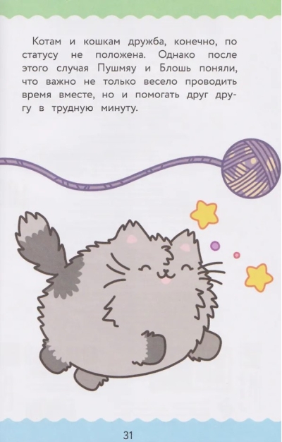 Познакомьтесь с Пушмяу и Блошью — неразлучными котиками, которые вместе находят приключения, устраивают смешные поиски потерянных клубочков, иногда ссорятся, но в итоге всегда понимают друг друга и поддерживают в трудную минуту.