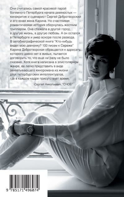 Новое издание знаменитого бестселлера, завоевавшего сердца тысяч читателей. Автобиографическая книга «Кто‑нибудь видел мою девчонку? 100 писем к Сереже» —эпистолярное признание в любви, которая не исчезает даже после смерти. Пронзительная история отношений Сергея Добротворского, рано ушедшего из жизни известного кинокритика, киноведа и сценариста, и его бывшей жены Карины Добротворской, журналистки, ставшей одной из ключевых фигур в международной индустрии глянца.