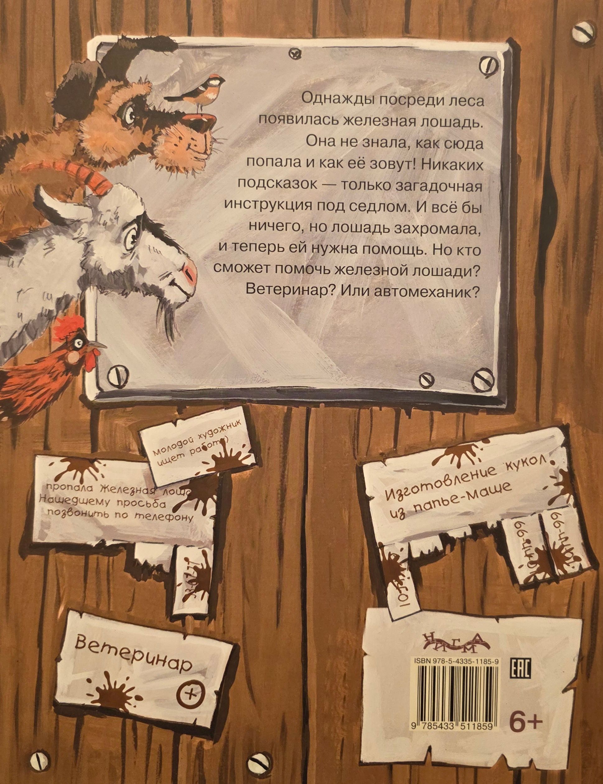 Однажды посреди леса появилась железная лошадь. Она не знала, как сюда попала и как её зовут! Никаких подсказок — только загадочная инструкция под седлом. И всё бы ничего, но лошадь захромала, и теперь ей нужна помощь. Но кто сможет помочь железной лошади? Ветеринар? Или автомеханик?