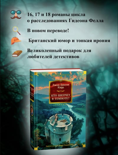 В истории невозможного, но свершившегося убийства, рассказанной в романе «Кто шепчет в темноте?» (1946), все указывает на мистическую природу преступления, и хитроумному доктору Феллу предстоит либо поверить в нее, либо развеять сгустившийся морок…