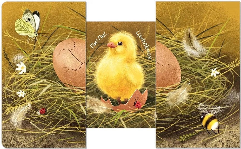 Раздвижная книжка-картонка познакомит вашего малыша с животными, которые вылупляются из яиц. Они самые разные и удивительные: черепашка, пингвин, цыплёнок и даже динозавр!
