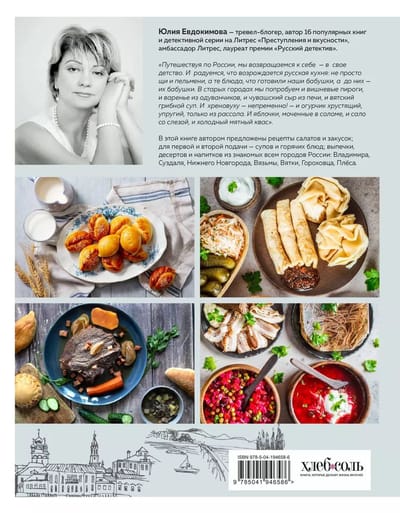 Эта книга для тех, кто не ограничивается в своей повседневной кулинарной жизни блинами, жареной картошечкой с селедочкой, окрошкой, щами, крупами и т.п. Все это вкуснейшие русские блюда, но их список гораздо разнообразнее, чем мы представляем. Ведь русская кухня всегда вбирала в себя опыт соседей — не дальних, но близких. Поэтому в книге Юлия Евдокимова — известный автор гастрономических путешествий по России, Италии и другим странам мира — рассказывает не только о блюдах из Вязников, Вятки, Владимира, Суздаля, Плёса, Гороховца, Тутаева, Нижнего Новгорода, но представляет рецепты чувашской, удмуртской, марийской, пермской кухонь. Аппетитные блюда с загадочными названиями, иногда записанные из уст местных жителей, с их особым говорком и юмором, красочные фотографии городов и иллюстрации кушаний из разных уголков России, — всем этим полна книга, все это дарит автор благодарным читателям.
