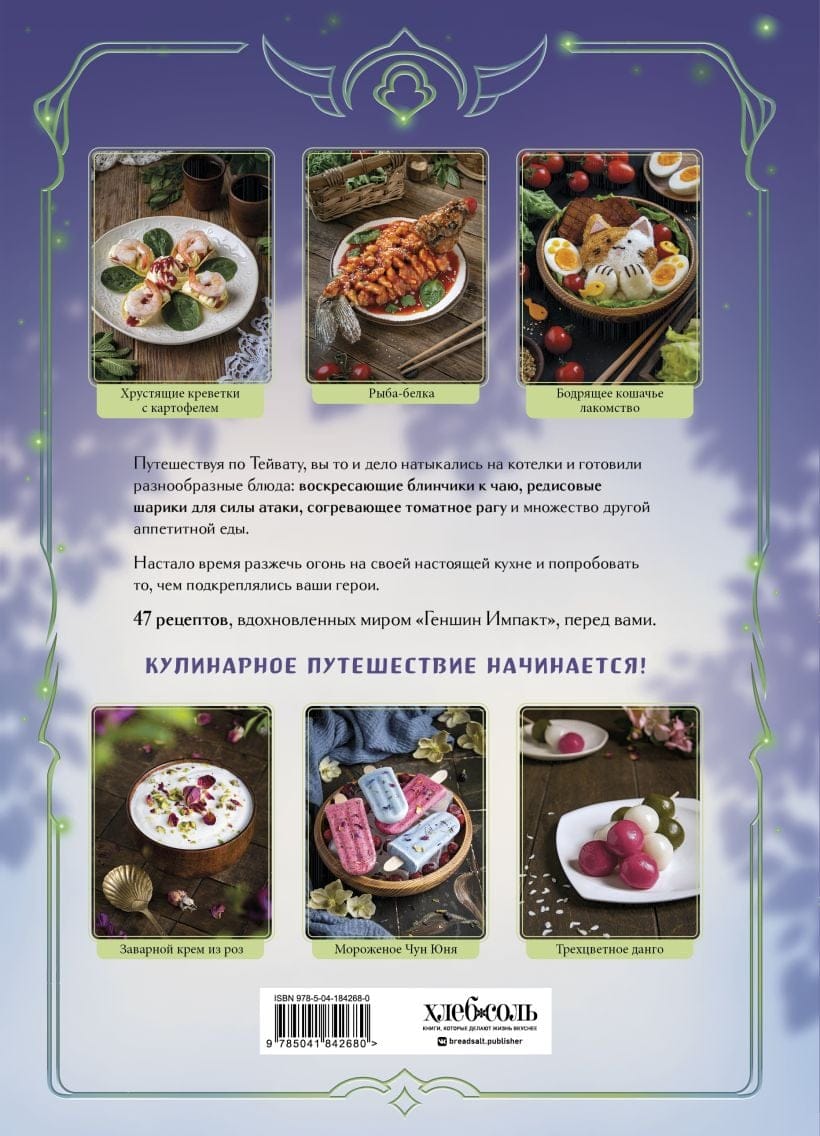 Кашеваря в котелках, разбросанных по всему Тейвату, разве не хотелось попробовать все эти удивительные блюда? Да еще с такими интригующими названиями: супервеликолепная пицца, лепешка «Мора», тулумба, кацу-сандо... С помощью этой уникальной книги вы сможете воплотить на своей кухне 47 рецептов, которые помогали вашим любимым героям восстановить здоровье, повышать выносливость и увеличивать атаку.