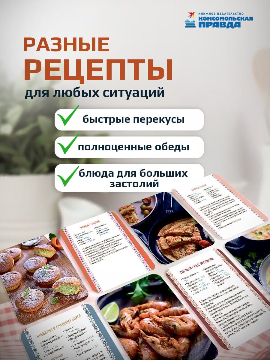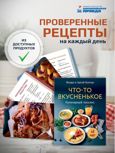 Готовка становится легкой и увлекательной, если любимые рецепты всегда под рукой. Венера и Сергей Осепчук, авторы кулинарных бестселлеров, лауреаты премий Top-Blogger 2023 и «Легенда Российского блогинга» 2024, собрали в этой колоде более 40 рецептов, с которыми привычное меню заиграет по-новому: от хрустящего хачапури до идеального «Медовика». Доставайте карту, вдохновляйтесь идеями для быстрых перекусов, полноценных обедов и больших застолий в компании друзей.