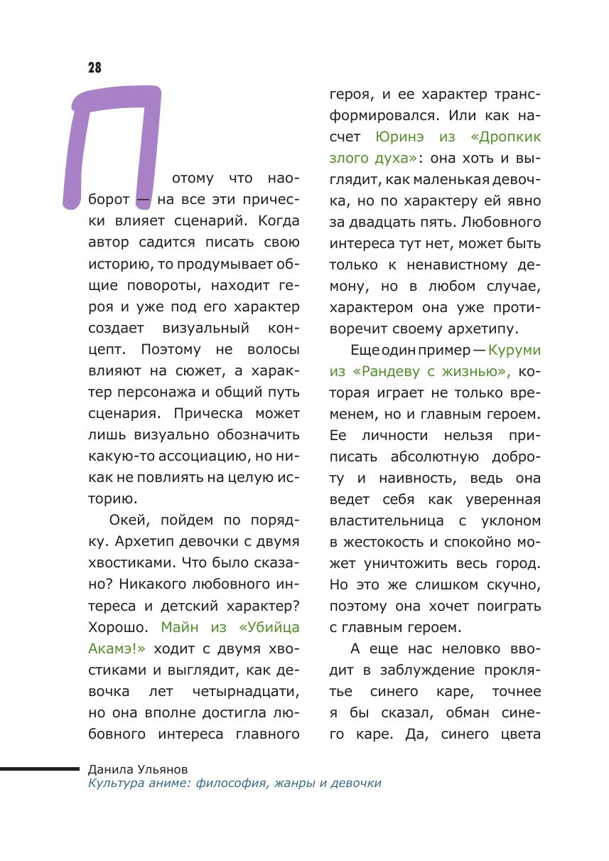Так мы могли бы рассказать об этой книге, но аниме — это уникальное культурное явление со своими жанровыми особенностями, глубокими смыслами и философией. В этой книге вы найдете эссе на совершенно разные темы: подход к дизайну персонажей и «тайные смыслы», особенности романтики и творчества Хаяо Миядзаки.
