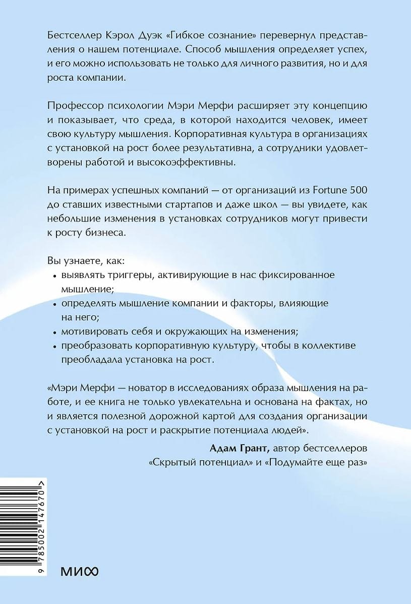 Бестселлер Кэрол Дуэк «Гибкое сознание» перевернул представления о нашем потенциале. Способ мышления определяет успех, и его можно использовать не только для личного развития, но и для роста компании.