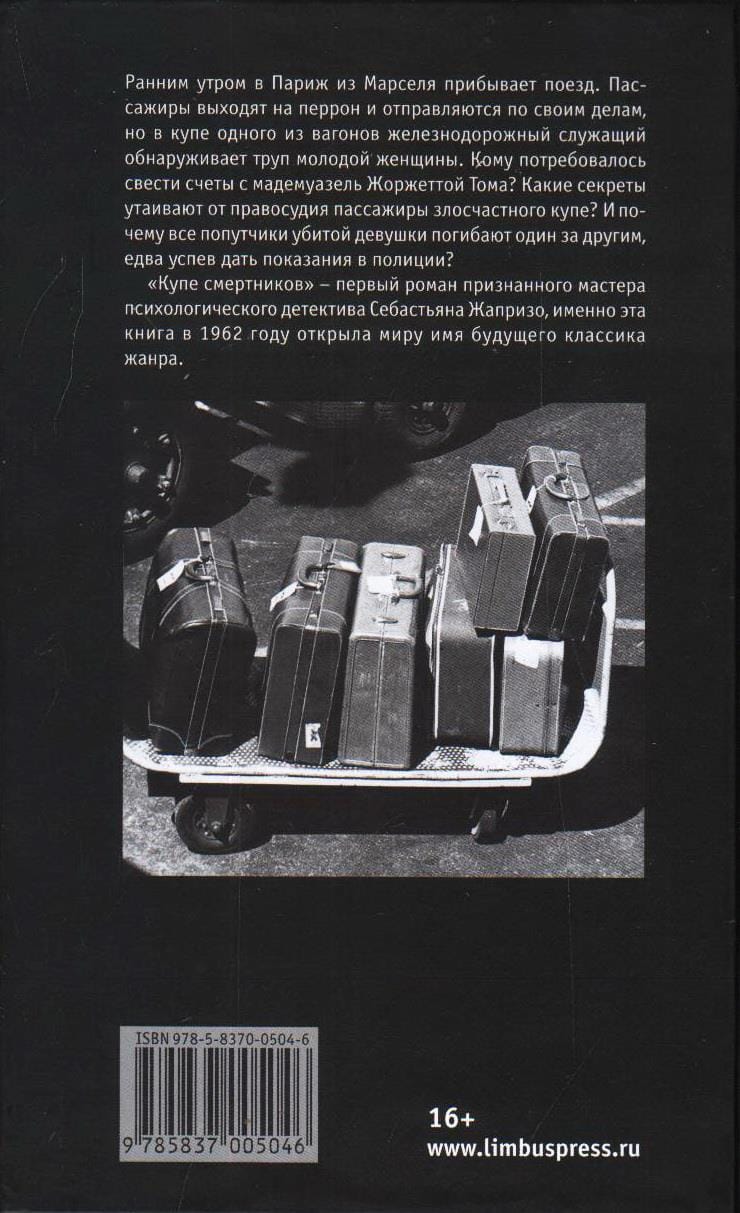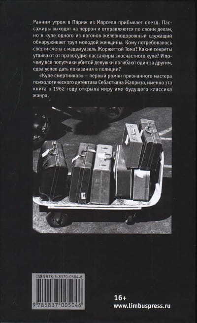 Ранним утром в Париж из Марселя прибывает поезд. Пассажиры выходят на перрон и отправляются по своим делам, но в купе одного из вагонов железнодорожный служащий обнаруживает труп молодой женщины. Кому потребовалось свести счеты с мадемуазель Жоржеттой Тома? Какие секреты утаивают от правосудия пассажиры злосчастного купе? И почему все попутчики убитой девушки погибают один за другим, едва успев дать показания в полиции? «Купе смертников» - первый роман признанного мастера психологического детектива Себастьяна Жапризо, именно эта книга в 1962 году открыла миру имя будущего классика жанра.