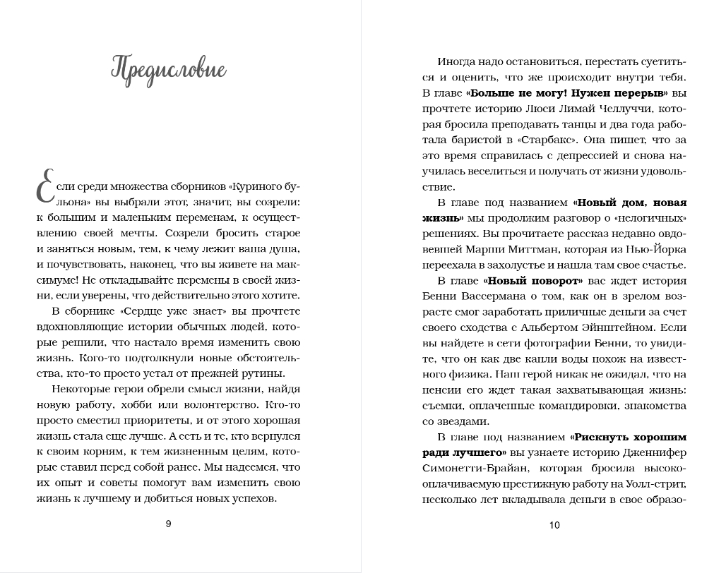 В детстве, когда вы болели, ваша бабушка давала вам куриный бульон. Сегодня питание и забота нужны вашей душе. Маленькие истории из «Куриного бульона» исцелят душевные раны и укрепят дух, дадут вашим мечтам новые крылья и откроют секрет самого большого счастья — счастья делиться и любить.