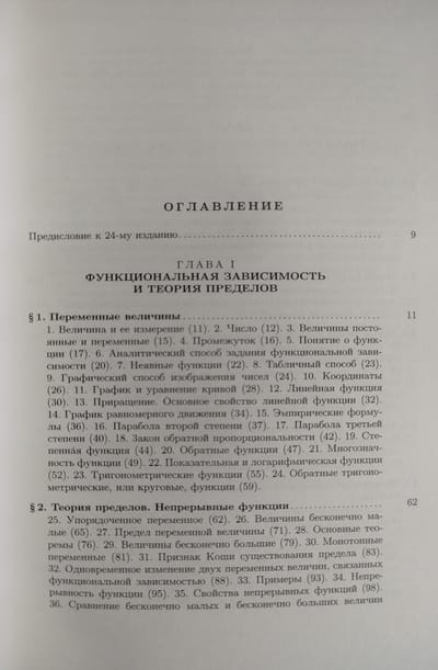 Фундаментальный учебник по высшей математике, выдержавший более двадцати изданий, переведенный на множество языков мира, отличается, с одной стороны, систематичностью и строгостью изло-жения, а с другой - простым языком, подробными пояснениями и многочисленными примерами, иллюстрирующими теорию. В первом томе изложены функцио-нальная зависимость и теория пределов, понятие о производной и интеграле, ряды и их приложения к приближенным вычислениям, функции нескольких переменных, комплексные числа, начала высшей алгебры и интегрирование функ-ции. В настоящем, 24-м, издании отмечена устаревшая терминология,  сделаны некоторые замечания, связанные с методикой изложения материала, отличающейся от современной, исправлены опечатки.