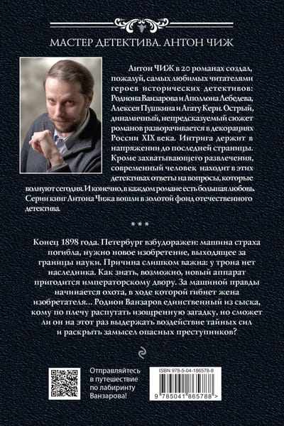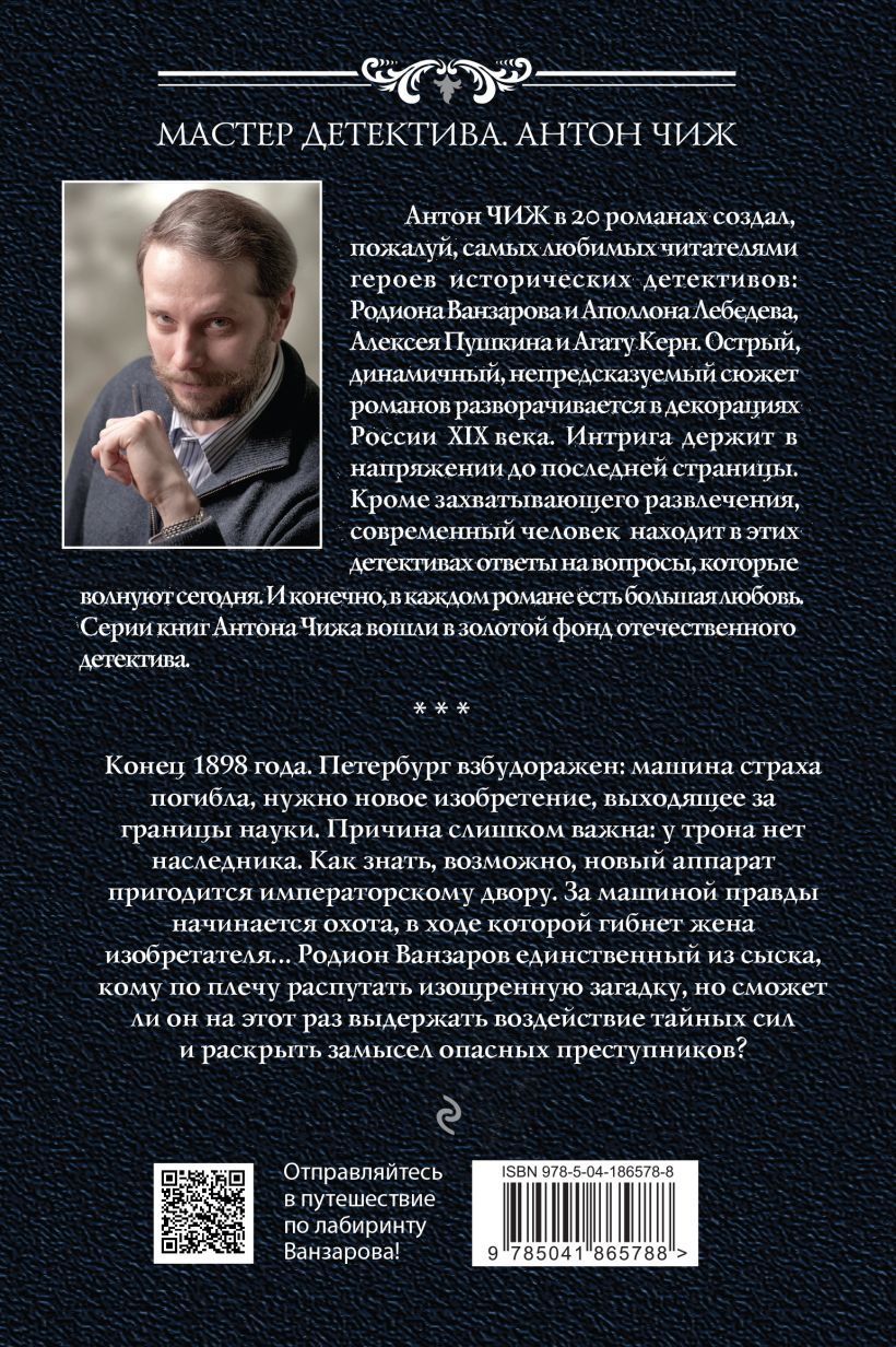 Конец 1898 года. Петербург взбудоражен: машина страха погибла, нужно новое изобретение, выходящее за границы науки. Причина слишком важна: у трона нет наследника. Как знать, возможно, новый аппарат пригодится императорскому двору. За машиной правды начинается охота, в ходе которой гибнет жена изобретателя…Родион Ванзаров единственный из сыска, кому по плечу распутать изощренную загадку, но сможет ли он в этот раз выдержать воздействие тайных сил и раскрыть замысел опасных преступников?