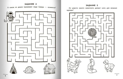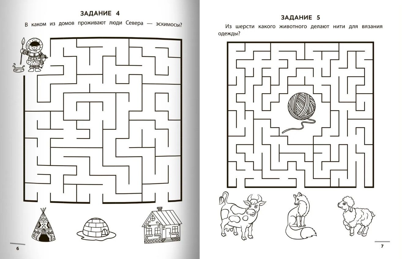 Кроме того, автор сделал любимые ребятами лабиринты ещё и познавательными! Предложите ребёнку подумать и ответить на вопрос в начале задания, а потом отправиться в запутанное путешествие по лабиринту, чтобы проверить свой ответ.