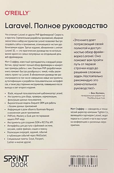 Что отличает Laravel от других PHP-фреймворков? Скорость и простота. Стремительная разработка приложений, обширная экосистема и набор инструментов Laravel позволяют быстро создавать сайты и приложения, отличающиеся чистым удобочитаемым кодом. Третье издание, обновленное с учетом Laravel 10, — это практическое руководство по использованию одного из самых популярных на сегодняшний день веб-фреймворков.
