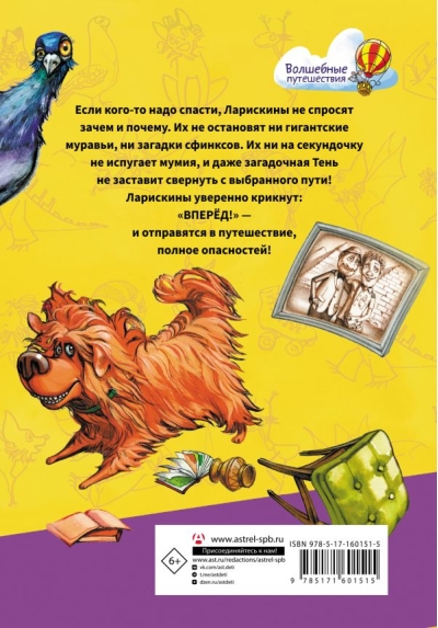 Если кого-то надо спасти, Ларискины не спросят зачем и почему. Их не остановят ни гигантские муравьи, ни загадки сфинксов. Их ни на секундочку не испугает мумия, и даже загадочная Тень не заставит свернуть с выбранного пути! Ларискины уверенно крикнут: «ВПЕРЁД!» — и отправятся в путешествие, полное опасностей!