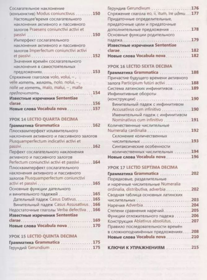 Этот самоучитель предназначен для тех, кто самостоятельно изучает латинский язык. Он позволяет выработать навыки, необходимые для чтения несложной литературы, и овладеть основами грамматики: уроки самоучителя знакомят и с грамматическими особенностями языка, и с лексикой. Для быстрого запоминания обычных речевых конструкций внимательно читайте подборки с лексическим материалом, который сопровождается транслитерацией. В каждом уроке самоучителя вы найдете описания лексико-грамматических категорий всех частей речи, упражнения на запоминание изученного материала, тексты с использованием речевых структур. Для проверки сделанных упражнений в конце книги даются поурочные ключи. Уроки самоучителя дополнены словарем, которым можно воспользоваться для перевода незнакомых слов, встречающихся в упражнениях. Книга также содержит полезную историческую информацию.