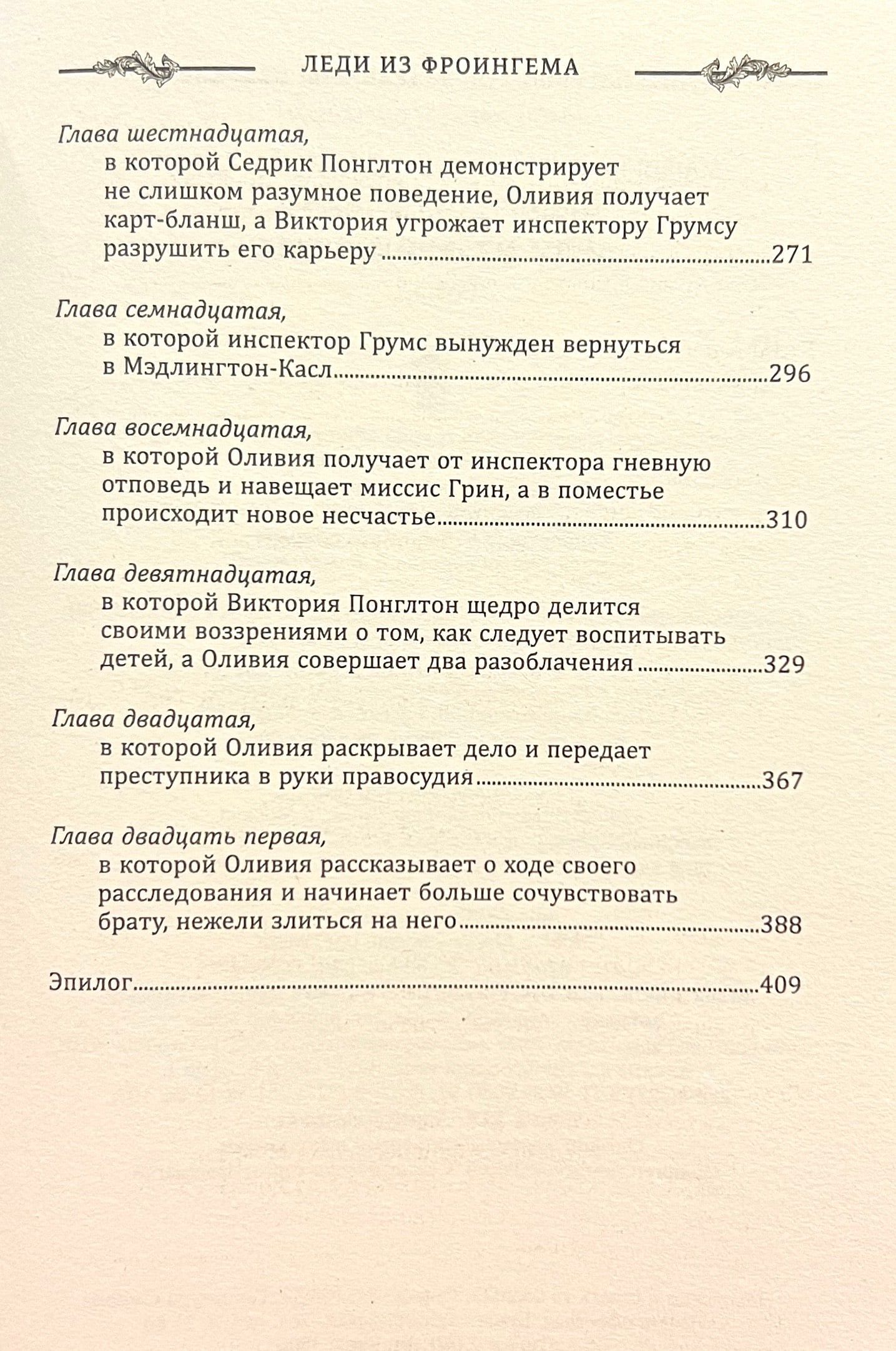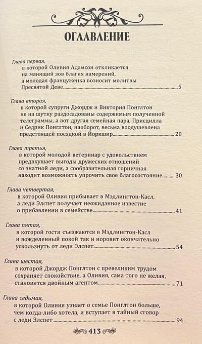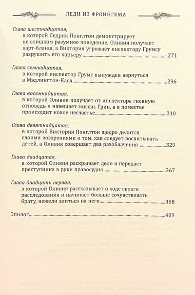 Дав согласие, Оливия и не подозревает, что в Йоркшире ее надолго задержит расследование преступления, чьи корни уходят в далекое прошлое. В Мэдлингтоне девушке предстоит примерить на себя не только роль компаньонки, но и лицемерной интриганки, и подозреваемой, и сыщика. В расследовании ей будут помогать брат близнец Филипп, молодая особа мисс Имоджен Прайс, мечтающая добиться славы на театральном поприще, и, как это ни странно, инспектор полиции Грумс, придерживающийся весьма прогрессивных взглядов. Что скрывает прошлое семьи Понглтонов? И какие секреты таит заброшенная часовня? Ответы на эти вопросы там, в Мэдлингтоне. Вторая книга в серии о расследованиях близнецов Адамсонов понравится любителям классических английских детективов.