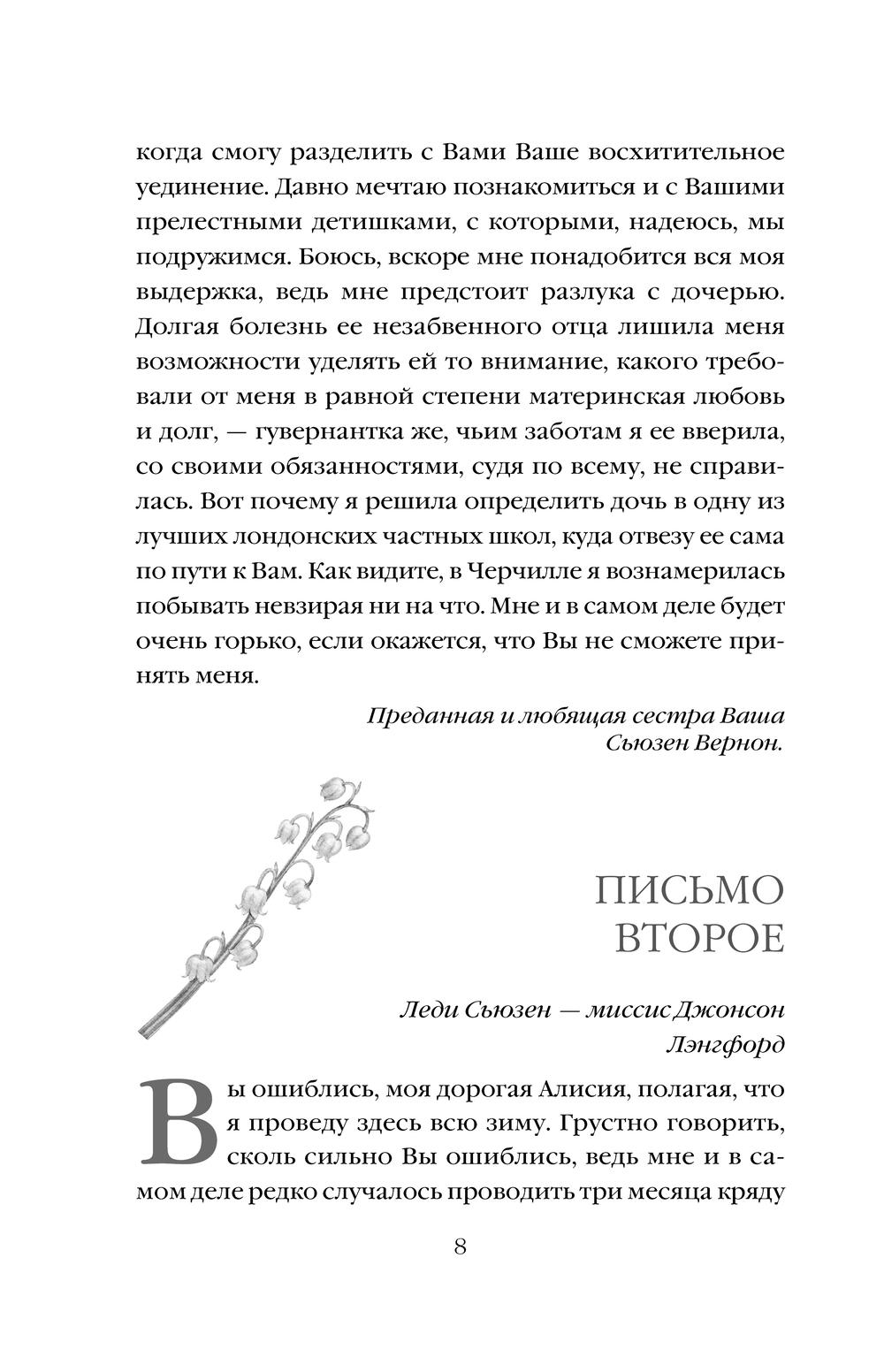 «Леди Сьюзен» — роман в письмах, рассказывающий о жизни светской красавицы леди Сьюзен, двуличной и своенравной особе. У нее много забот: не уронить остатки достоинства в глазах света, выдать удачно замуж свою дочь Фредерику. Герои романа любят и ненавидят, страдают от ревности и строят козни.