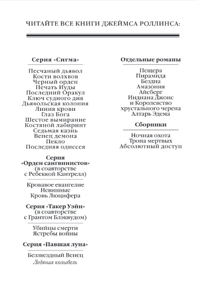 Продолжение новейшего фантастического цикла Джеймса Роллинса — автора с мировым именем, создателя многочисленных бестселлеров New York Times № 1, переведенных на 40 языков.