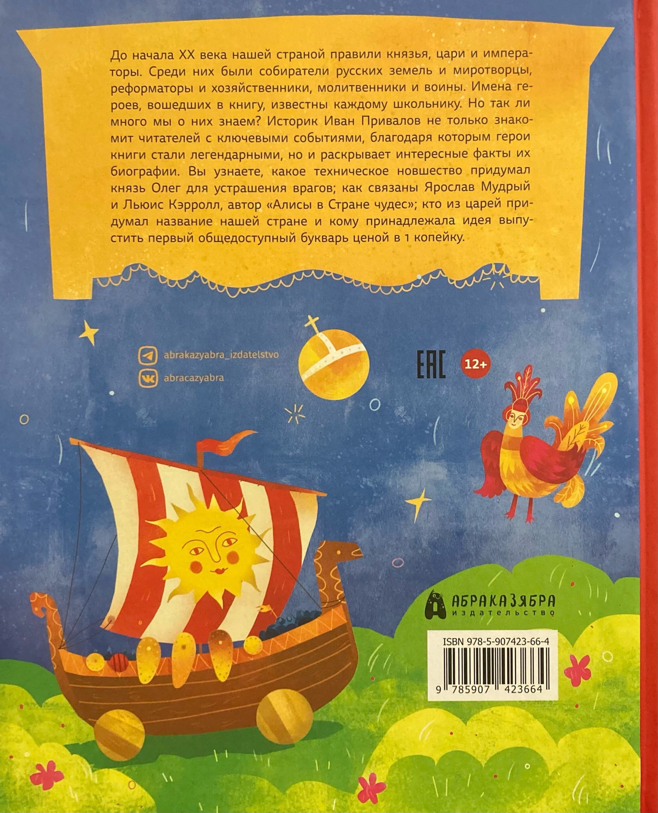 До начала XX века страной правили князья, цари и императоры. Среди них были собиратели русских земель и миротворцы, реформаторы и хозяйственники, молитвенники и воины. Имена героев, вошедших в книгу, известны каждому школьнику. Но так ли много мы о них знаем? Историк Иван Привалов не только знакомит читателей с ключевыми событиями, благодаря которым герои книги стали легендарными, но и раскрывает интересные факты их биографии Вы узнаете, какое техническое новшество придумал князь Олег для устрашения врагов; как связаны Ярослав Мудрый и Льюис Кэрролл, автор «Алисы в Стране чудес»; кто из царей придумал название стране и кому принадлежала идея выпустить первый общедоступный букварь ценой в 1 копейку.