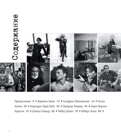 Люди, перевернувшие мир фотографии. Перед вами книга, которая расскажет о жизни и творчестве гениальных фотографов: Доротеи Ланж, У. Юджина Смита, Робера Дуано, Сесила Битона, Маргарет Бурк-Уайт и многих других знаменитых мастеров своего дела. Эта книга — отличная возможность увидеть настоящее искусство, а также историю 20 и 21 веков глазами величайших фотографов.