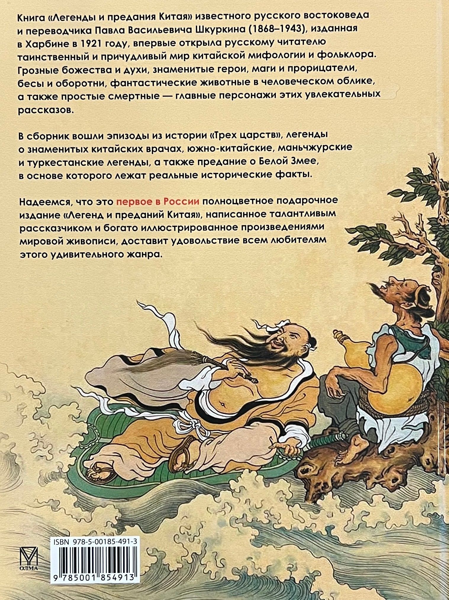 Книга «Легенды и предания Китая» известного русского востоковеда и переводчика Павла Васильевича Шкуркина (1868–1943), изданная в Харбине в 1921 году, впервые открыла русскому читателю таинственный и причудливый мир китайской мифологии и фольклора. Грозные божества и духи, знаменитые герои, маги и прорицатели, бесы и оборотни, фантастические животные в человеческом облике, а также простые смертные — главные персонажи этих увлекательных рассказов.