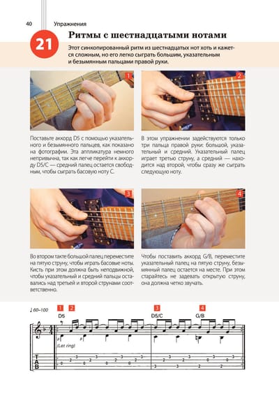 63 пошаговых урока, чтобы научиться профессионально играть на гитаре всего за 10 минут в день! Самоучитель содержит подробные фотографии, письменные пояснения и табулатуры. Комплексы упражнений помогут сосредоточиться на практике и вывести игру на качественно новый уровень. Каждый из них предназначен для развития определенной техники (игра боем, триоли, легато и т.д.) и рассчитан на десять минут. Книга написана простым и доступным языком, а схемы и фотографии помогут вам легко применить теоретические знания на практике.
