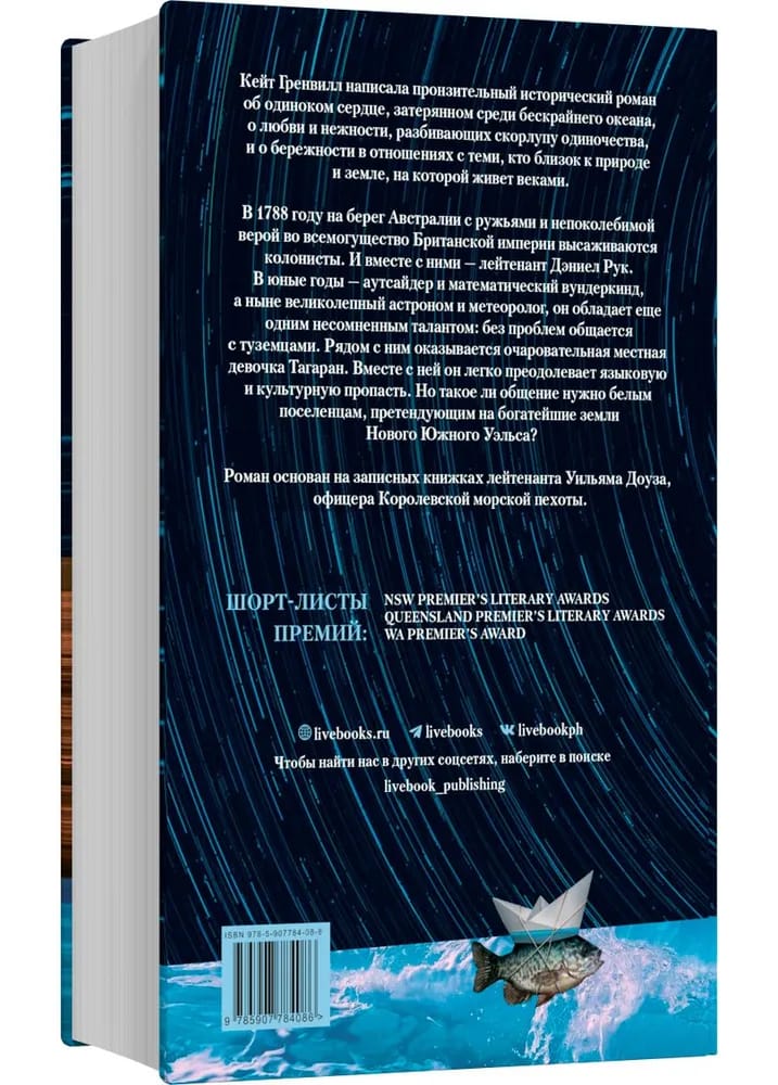 Кейт Гренвилл написала пронзительный исторический роман об одиноком сердце, затерянном среди бескрайнего океана, о любви и нежности, разбивающих скорлупу одиночества, и о бережности в отношениях с теми, кто близок к природе и земле, на которой живет веками. В 1788 году на берег Австралии с ружьями и непоколебимой верой во всемогущество Британской империи высаживаются колонисты. И вместе с ними — лейтенант Дэниел Рук. В юные годы — аутсайдер и математический вундеркинд, а ныне великолепный астроном и метеоролог, он обладает еще одним несомненным талантом: без проблем общается с туземцами. Рядом с ним оказывается очаровательная местная девочка Тагаран. Вместе с ней он легко преодолевает языковую и культурную пропасть. Но такое ли общение нужно белым поселенцам, претендующим на богатейшие земли Нового Южного Уэльса? Роман основан на записных книжках лейтенанта Уильяма Доуза, офицера Королевской морской пехоты.