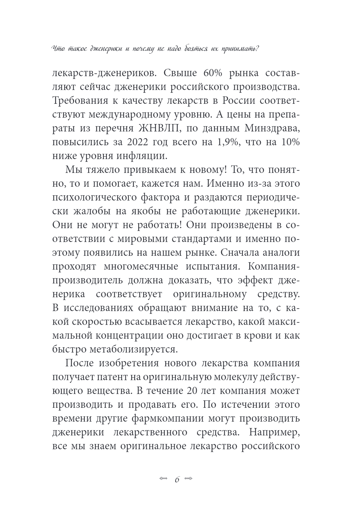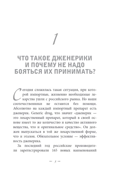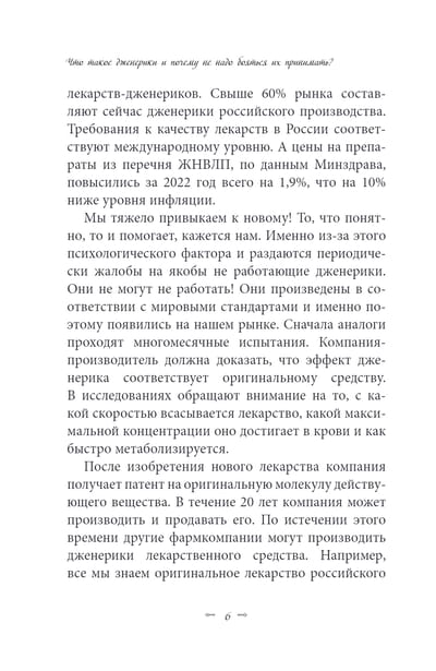 Generic drug, что значит дженерик, — это лекарственный препарат, который в своей основе имеет то же количество и качество активного вещества, что и в оригинальном средстве. Он должен выпускаться в той же лекарственной форме, что и эталон. Обязательное условие — эффективность дженерика. В своей новой книге автор останавливается на наиболее популярных сегодня лекарствах и их российских аналогах и объясняет, как выбрать безопасный, эффективный и недорогой препарат в условиях новой реальности.