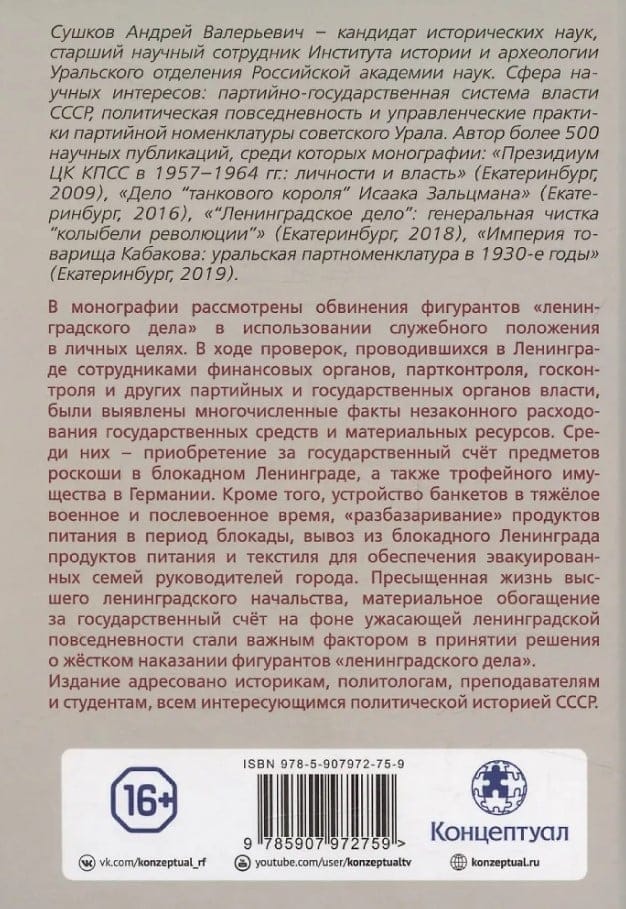 Пресыщенная жизнь высшего ленинградского начальства, материальное обогащение за государственный счёт на фоне ужасающей ленинградской повседневности стали важным фактором в принятии решения о жёстком наказании фигурантов «ленинградского дела». Издание адресовано историкам, политологам, преподавателям и студентам, всем интересующимся политической историей СССР.