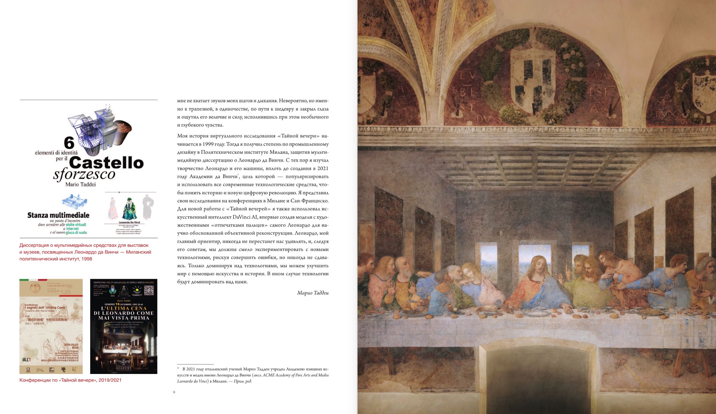 Но однажды один неравнодушный исследователь искусства Марио Таддеи, инженер по образованию, решил при помощи современных 3D-технологий возродить утраченный шедевр! Они помогли учесть все от композиции до деталей сюжета. В этой книге вы увидите полноценную историю того, как создавалась, менялась временем и реставрациями «Тайная вечеря». Окажитесь внутри картины и перед ней, погрузитесь в ту обстановку, какой ее видел и представлял себе Леонардо да Винчи.